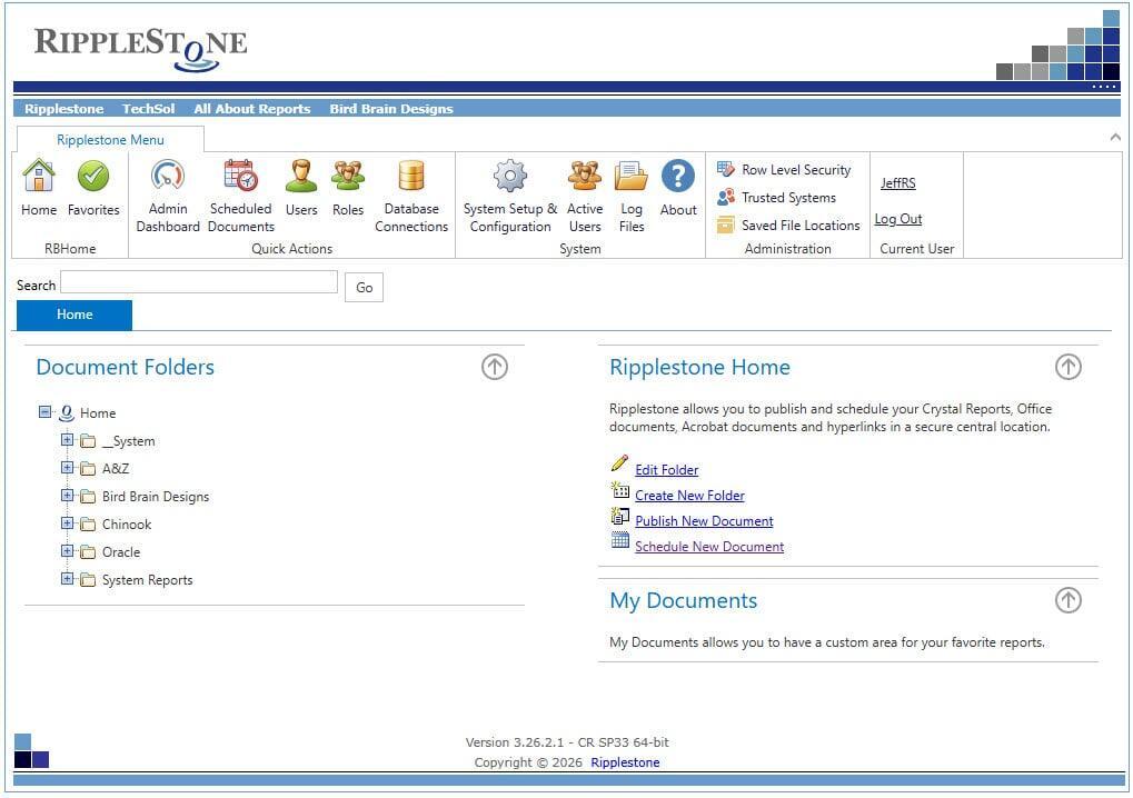 Ripplestone delivers a secure, scalable, and cost‑effective platform for organizations that rely on Crystal Reports and structured document distribution. Built for operational reliability, Ripplestone centralizes report publishing, scheduling, and access control within a streamlined web‑based environment. With features such as dynamic pick lists, row‑level security, automated email distribution, and robust user management, Ripplestone equips enterprises with the tools they need to maintain consistent reporting workflows without the overhead of Crystal Reports Server. Designed for teams that value performance, governance, and simplicity, Ripplestone ensures your reporting infrastructure stays efficient, compliant, and ready to support mission‑critical operations.